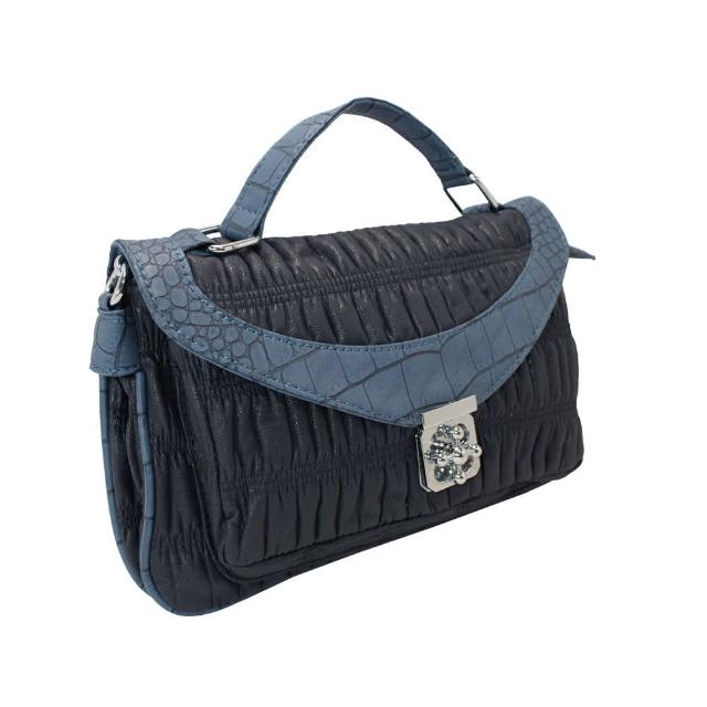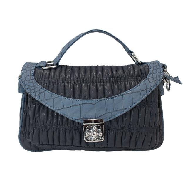Dennibella 丹妮貝拉時尚輕巧 動物紋抓皺手拿肩背包(深藍)