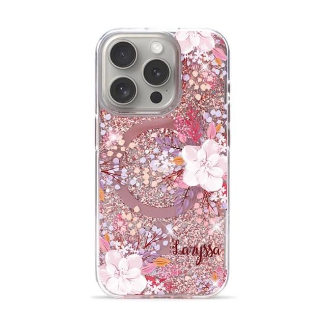 Dearcase淡粉櫻花 閃耀玫瑰金貝拉殼MagSafe - iPhone 15/14/Pro/Max 防摔手機殼(MagSafe 客製化手機殼 軍規防摔 金箔手機殼)