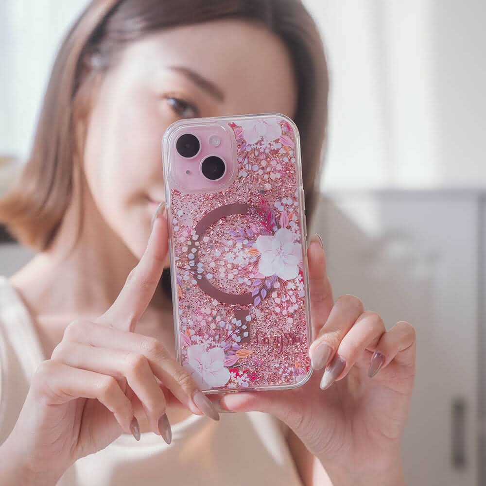 Dearcase淡粉櫻花 閃耀玫瑰金貝拉殼MagSafe - iPhone 15/14/Pro/Max 防摔手機殼(MagSafe 客製化手機殼 軍規防摔 金箔手機殼)