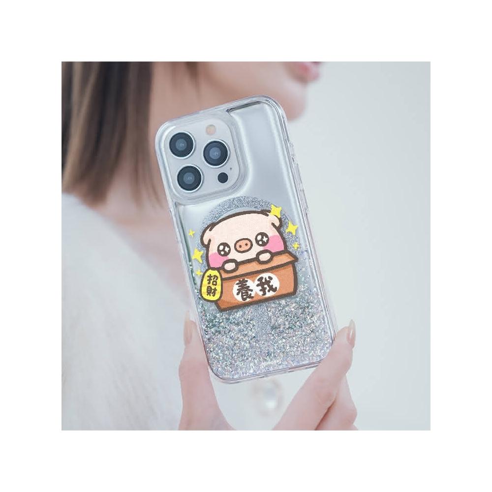 Dearcase萌萌豬 養我會招財 閃耀鏡面殼 訂製名字 iPhone客製化手機殼(閃耀鏡面殼 MagSafe 軍規防摔)