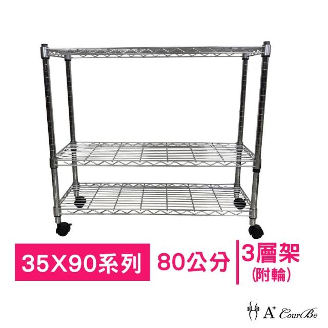 A+Courbe鐵力士鍍鉻移動式萬用收納三層架35x90x80cm鐵架 收納架 置物架 電器架 床邊櫃 鞋櫃 衣櫃