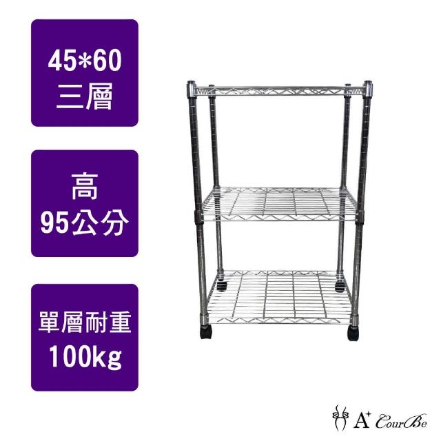 A+Courbe鐵力士鍍鉻移動式萬用收納三層架45x60x95cm鐵架 收納架 置物架 電器架 床邊櫃 鞋櫃 衣櫃