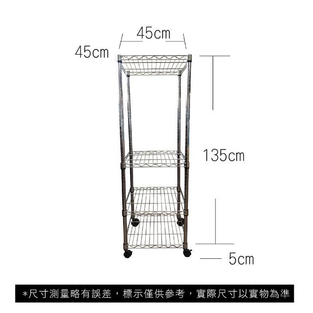 A+Courbe鐵力士鍍鉻移動式萬用收納四層架45x45x140cm鐵架 收納架 置物架 電器架 床邊櫃 鞋架