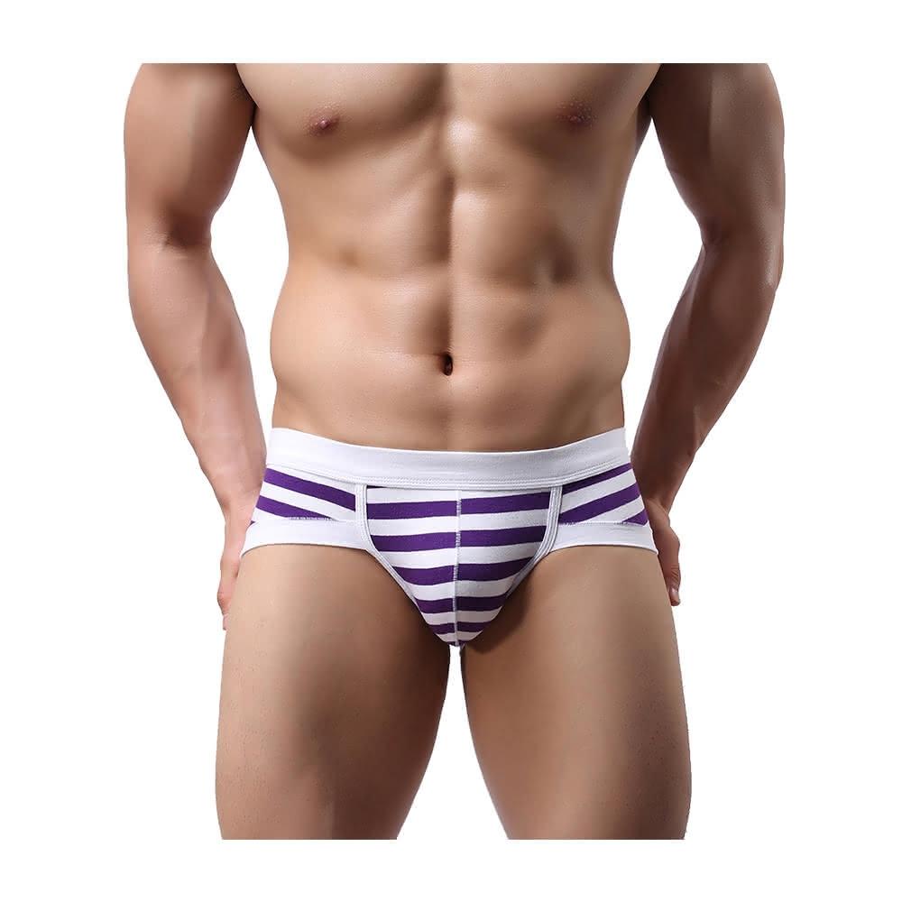 純棉透氣條紋男平口內褲1件組-紫色時尚條紋、透氣、內褲、男內褲、平口褲、紫色