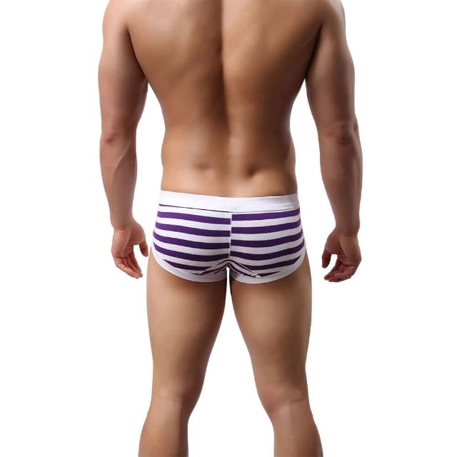 純棉透氣條紋男平口內褲1件組-紫色時尚條紋、透氣、內褲、男內褲、平口褲、紫色