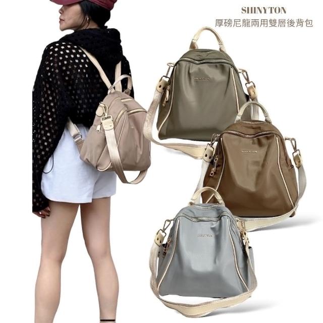 SHINYTONS067厚磅尼龍雙層兩用後背包後背包、肩背包、側背包、雙肩後背包、中型後背包