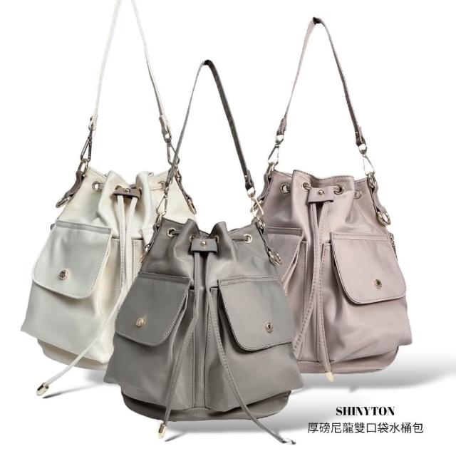 SHINYTONS095厚磅尼龍雙口袋2way水桶包側背包、斜背包、肩背包、水桶包、多口袋包、手提包