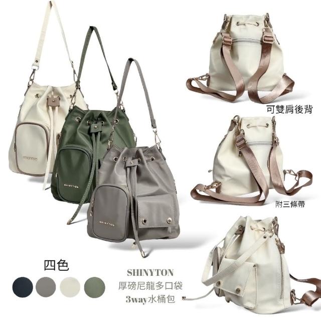 SHINYTONS096厚磅尼龍 3way多口袋水桶後背包肩背包、側背包、斜背包、水桶包、後背包、多口袋包