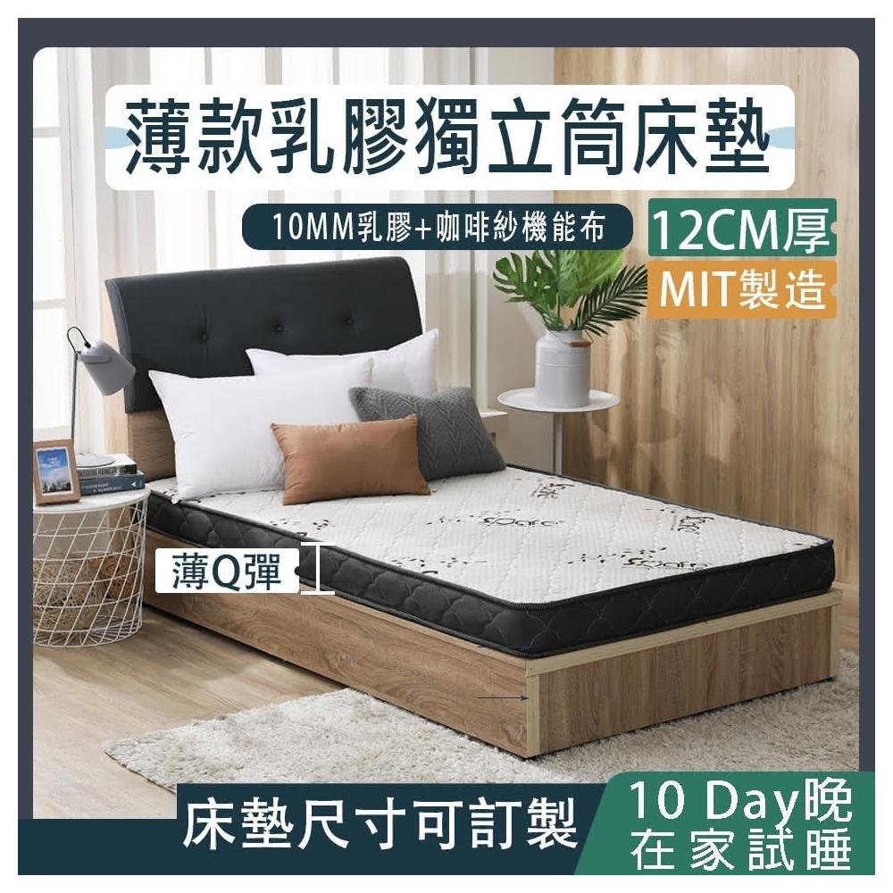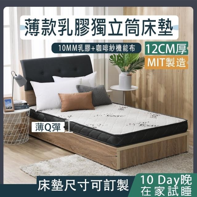 紳娜多家居SUD 超低薄12CM|乳膠獨立筒床-6尺雙人加大尺寸 咖啡砂抑菌除臭表布(尺寸訂做/薄床墊/日式床墊/乳膠床/薄床墊/宿舍床/露營床)