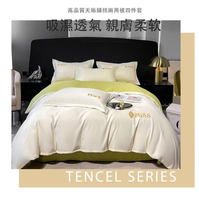 紳娜多家居40支 輕奢裸睡 奶白綠素色 AB版設計 天絲-薄被套雙人加大6尺床包組床單 床包 雙人 加大