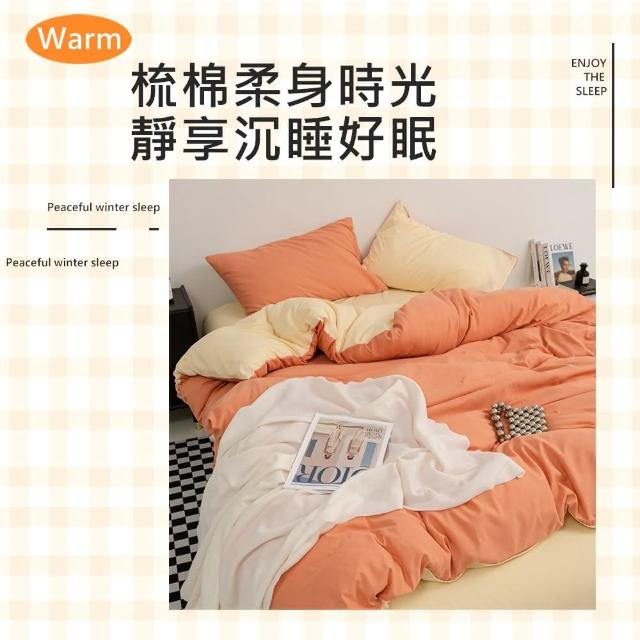 紳娜多家居精梳棉床包四件組 韓系ins 雙人6尺床包 薄被套 枕頭套 無印風 3M床包組 被套 四件組 MIT 芝士橙