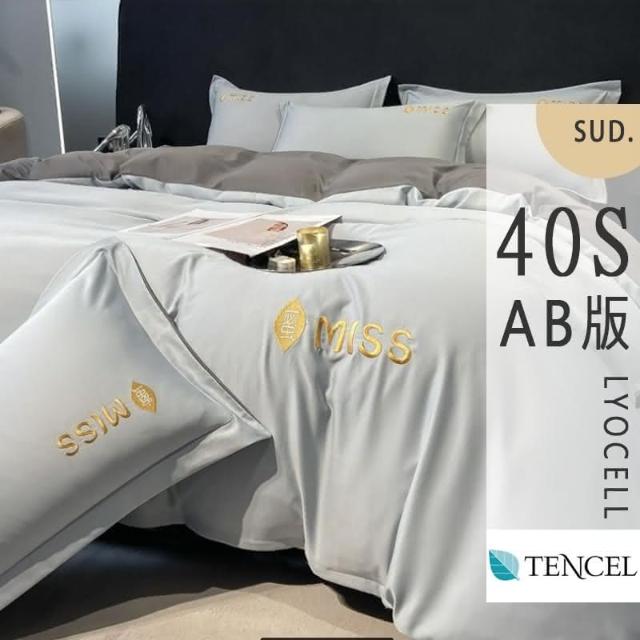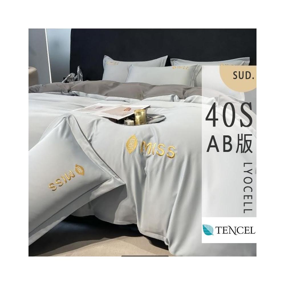 紳娜多家居40支 輕奢裸睡 淺藍灰素色AB版設計 TENCEL天絲-薄被套雙人加大6尺床包組床單 床包 雙人 加大