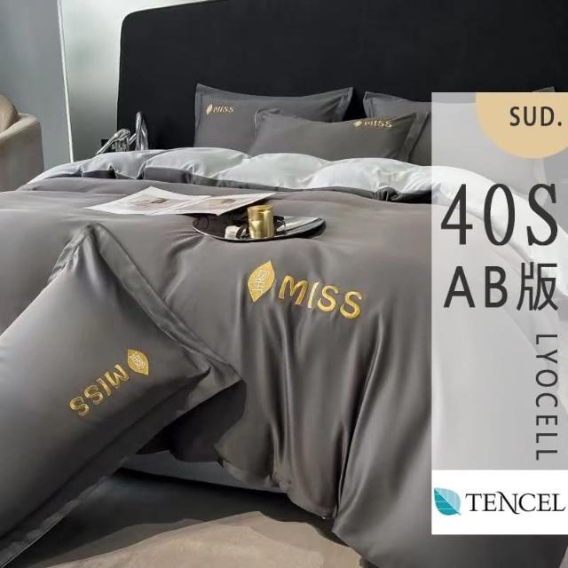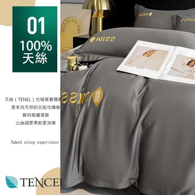 紳娜多家居40支 輕奢裸睡 深灰藍素色 AB版設計 TENCEL天絲-薄被套雙人加大6尺床包組床單 床包 雙人 加大