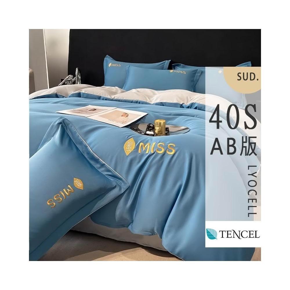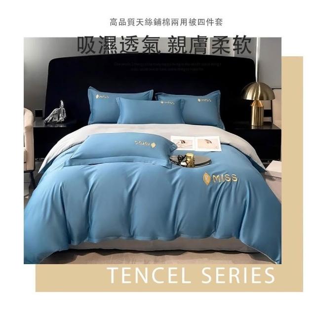 40支 輕奢裸睡 深藍灰素色AB版設計 天絲雙人5尺-薄被套四件套+薄被胎 TENCEL床包組 床單 雙人鋪棉兩用被組