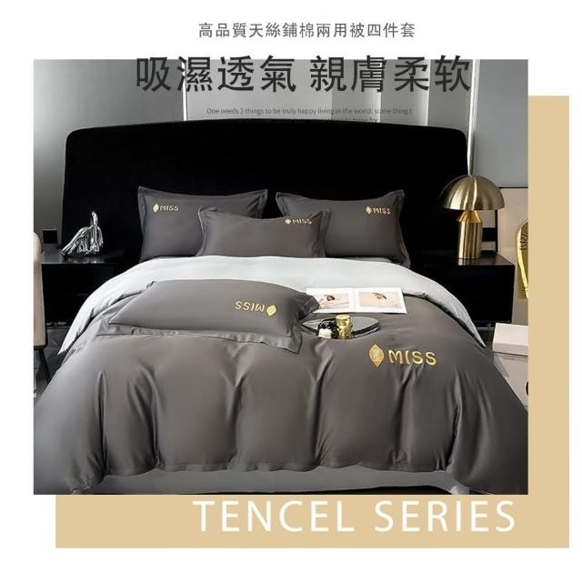 紳娜多家居40支 輕奢裸睡 深藍灰素色AB版設計 天絲雙人加大6尺-薄被套四件套+薄被胎 TENCEL床包組床單 床包 雙人 加大 鋪棉兩用被組