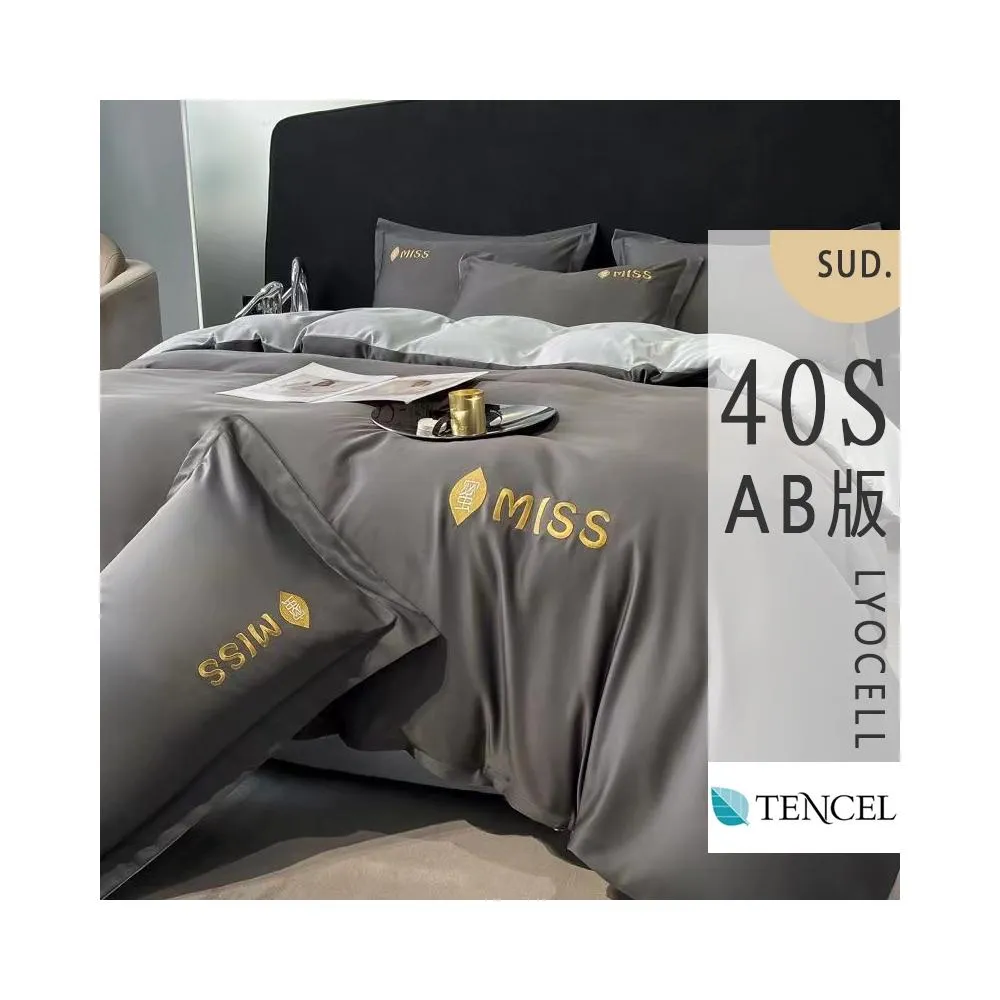 紳娜多家居40支 輕奢裸睡 深藍灰素色AB版設計 天絲雙人加大6尺-薄被套四件套+薄被胎 TENCEL床包組床單 床包 雙人 加大 鋪棉兩用被組