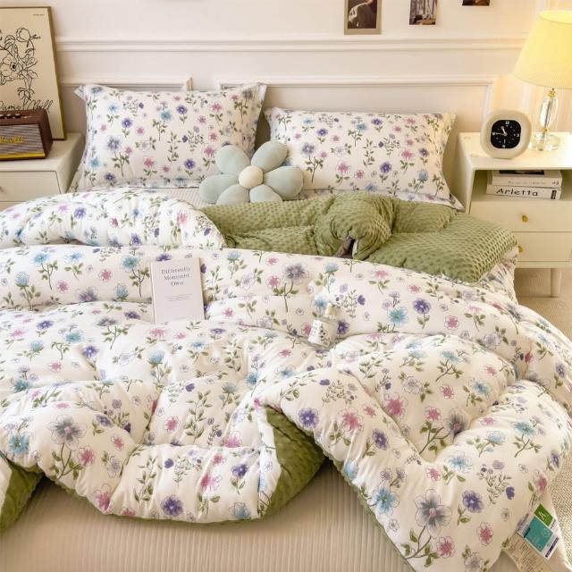 紳娜多家居可水洗雙層紗豆豆絨被 石墨稀被 花昀 5尺150X200 棉被 被子 冬被 韓國被 被套 雙人被 透氣被 單人被 雙人被