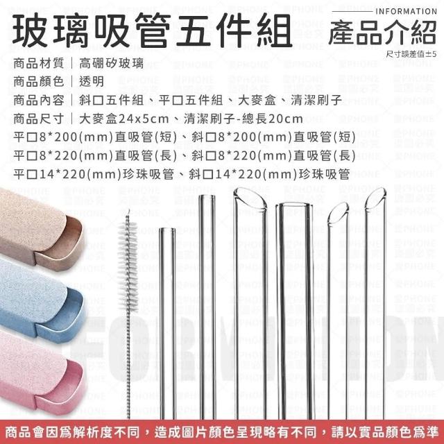 愛Phone吸管 玻璃吸管 斜口玻璃吸管5件組 玻璃吸管組 無毒無鉛 無異味 環保吸管 粗吸管 高硼矽玻璃 珍珠奶茶吸管 加長吸管