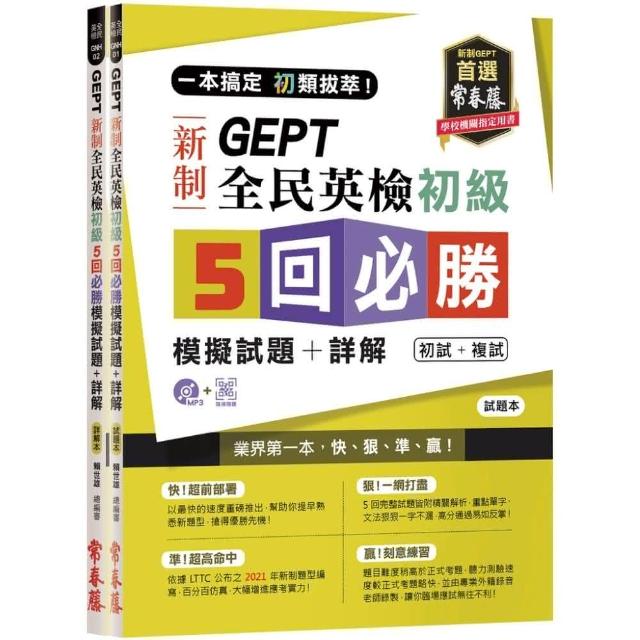 常春藤常春藤 新制全民英檢初級5回必勝模擬試題+詳解(初試+複試)(全民英檢)