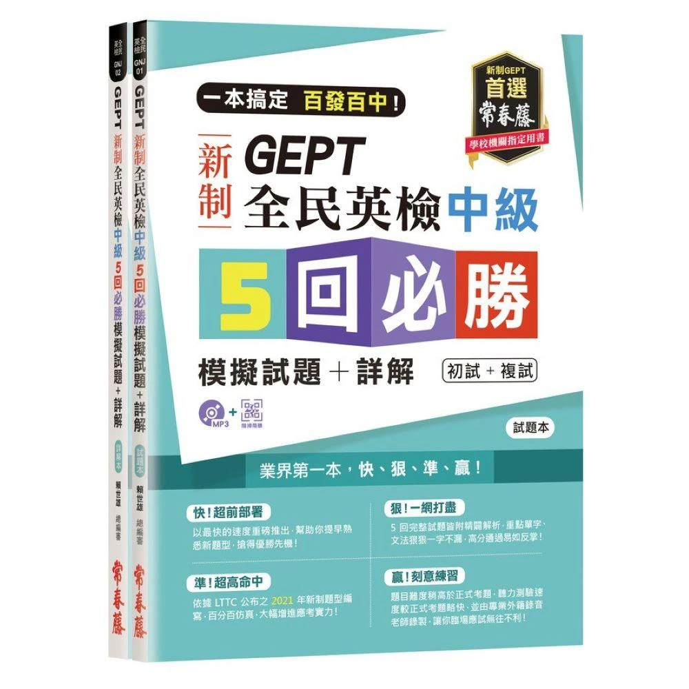 常春藤常春藤 新制GEPT全民英檢中級 5回必勝模擬試題+詳解(初試+複試)(全民英檢)