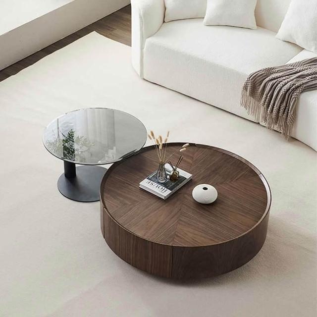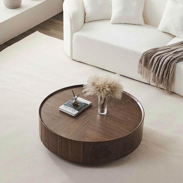 Taoshop 淘家舖高端胡桃木儲物圓形茶几組| 日式原木無印風 J-AA298 0.9米茶几+邊几