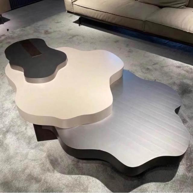 Taoshop 淘家舖茶几組|花形層疊木質 QY-CJ141121*97*32cm+111*94*45cm黑白雙拼色