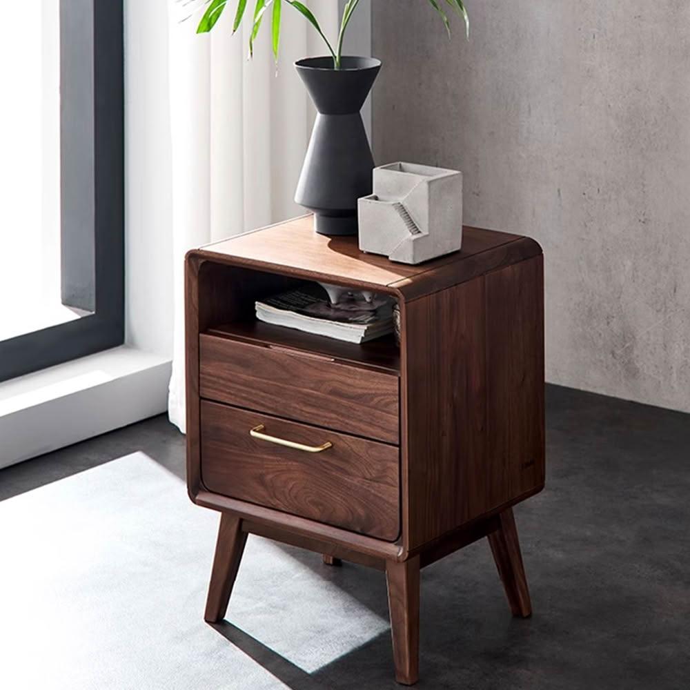 Taoshop 淘家舖全實木床頭櫃|黑胡桃木床邊櫃|床頭收納櫃HN - B5024