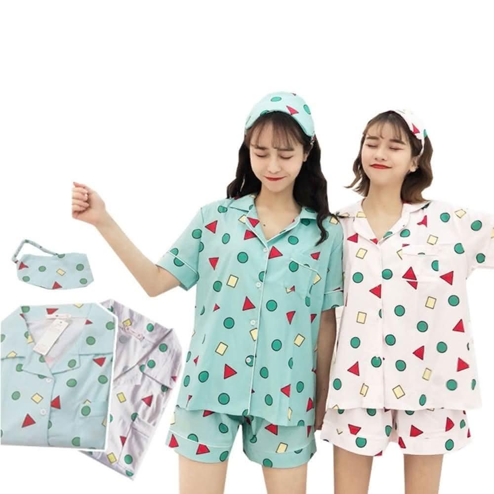 睡衣 卡通睡衣 兩件式 家居服 短袖短褲 幾何睡衣 居家睡衣 蠟筆小新同款睡衣