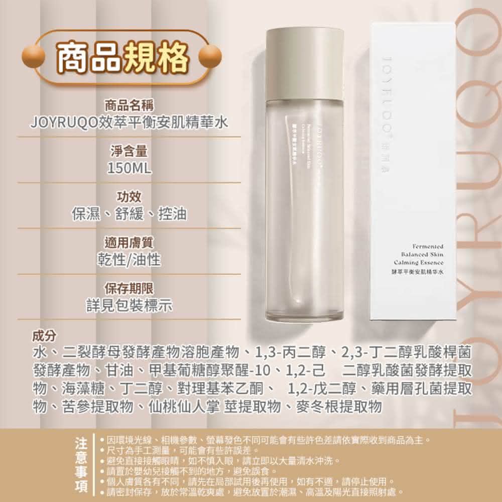 JOYRUQO 嬌潤泉酵萃平衡安肌精華水 化妝水 爽膚水 精華液 嬌潤泉精華水 精華水 控油舒緩補水保濕