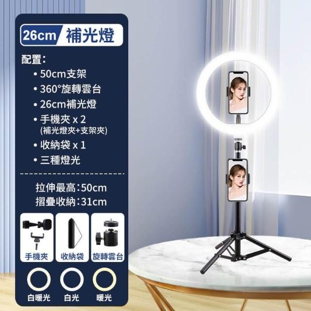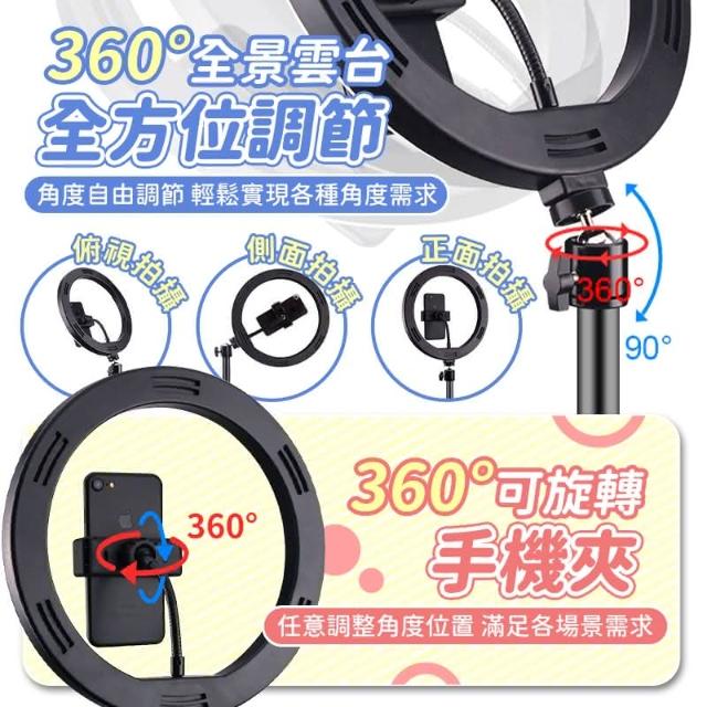 360度美顏補光燈 LED三色調光 環形燈 直播補光燈自拍打光燈 直播腳架 主播燈 美光燈 直播燈