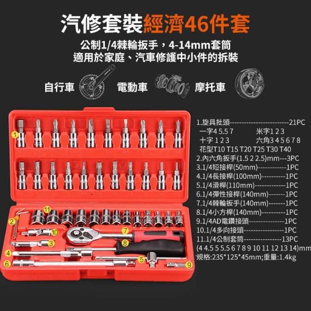 萬用 工具箱 全配46件 套筒 緊急工具 工具組 螺絲 內裝 拆卸 螺絲起子 套筒 轉接頭