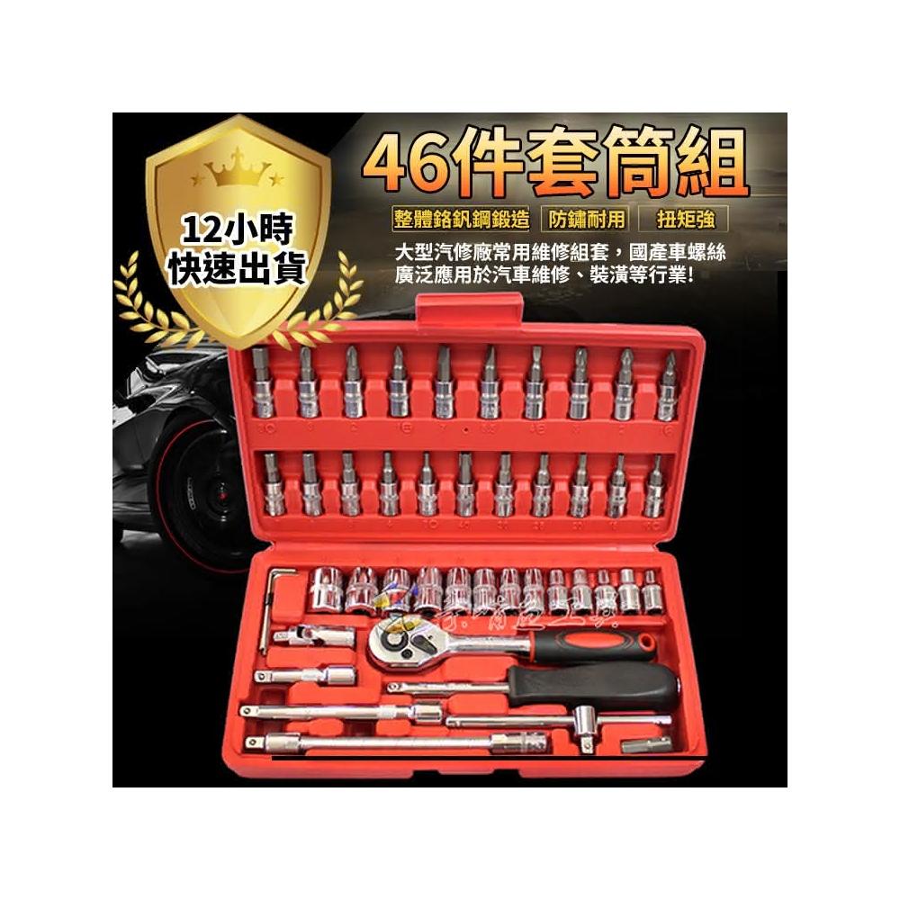 萬用 工具箱 全配46件 套筒 緊急工具 工具組 螺絲 內裝 拆卸 螺絲起子 套筒 轉接頭