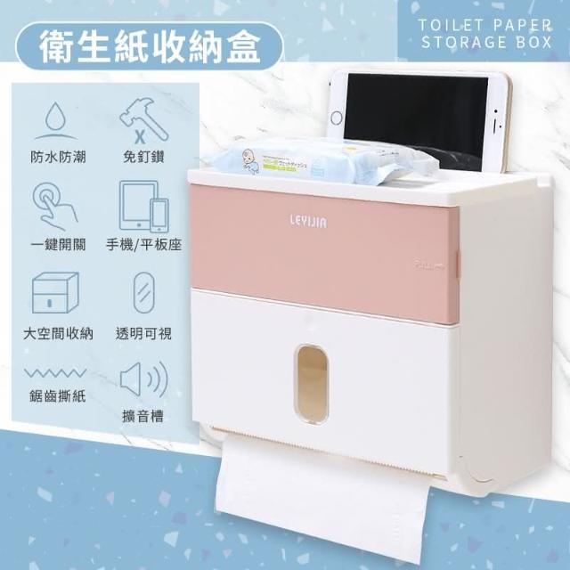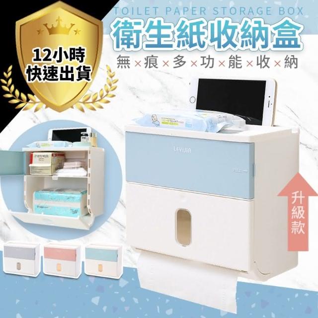 附無痕貼 雙層衛生紙收納盒 衛生紙收納盒 浴室置物架 防水衛生紙盒防水面紙盒 收納架 紙巾盒