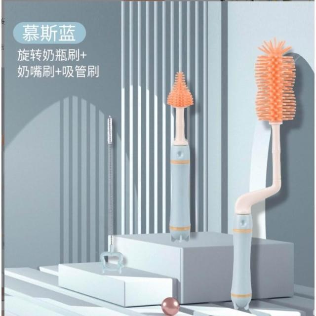 嬰兒奶嘴刷+奶瓶刷+吸管刷三件套裝組/杯刷組合/裝旋轉式軟膠清潔刷