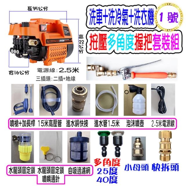 全記得大賣場 K100洗車機可調壓 +1號洗冷氣套裝組 全自動高壓馬達110V 洗車機 洗冷氣 沖洗洗衣機 接水管自吸兩用