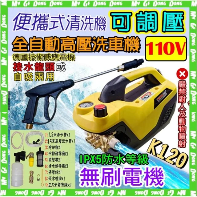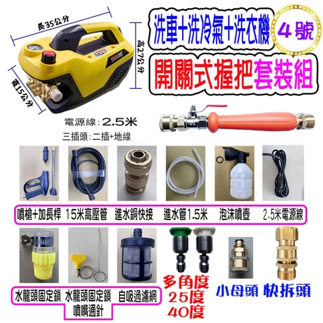 全記得大賣場 K120洗車機可調壓 +4號洗冷氣套裝組 全自動高壓馬達110V 洗車機 洗冷氣 沖洗洗衣機 接水管自吸兩用