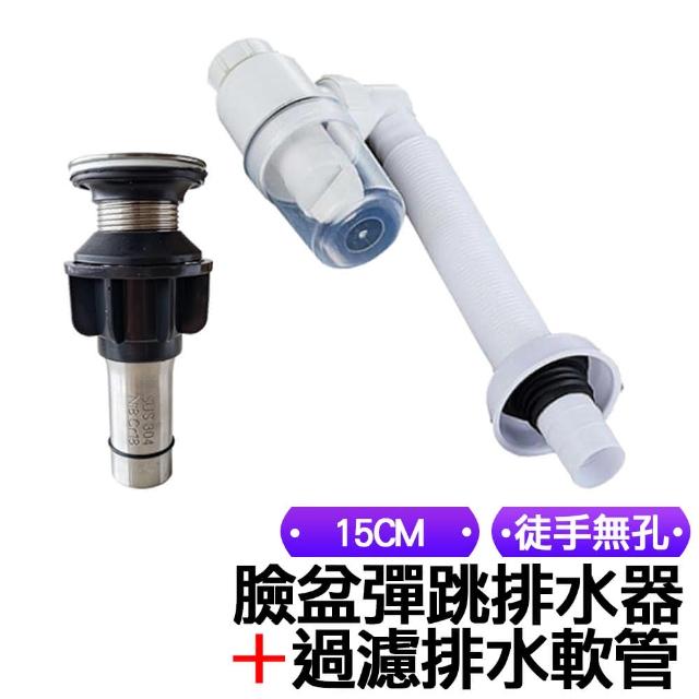 全記得大賣場 「15cm徒手無孔」臉盆按壓彈跳式304不鏽鋼排水器+過濾排水軟管「套組」下水器,排水管