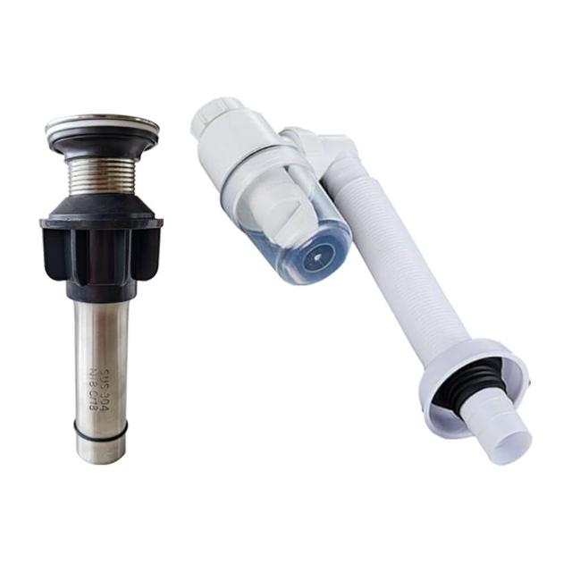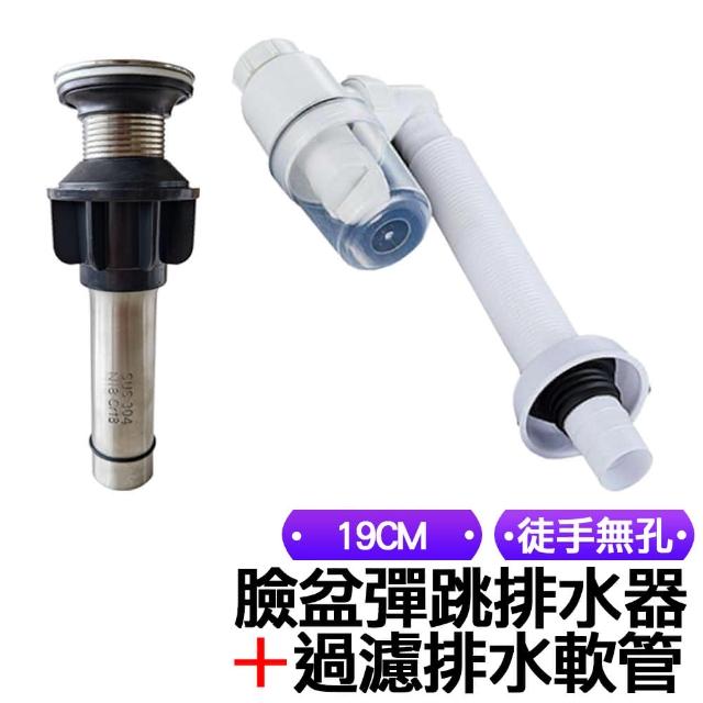 全記得大賣場 「19cm徒手無孔」臉盆按壓彈跳式304不鏽鋼排水器+過濾排水軟管「套組」下水器,排水管