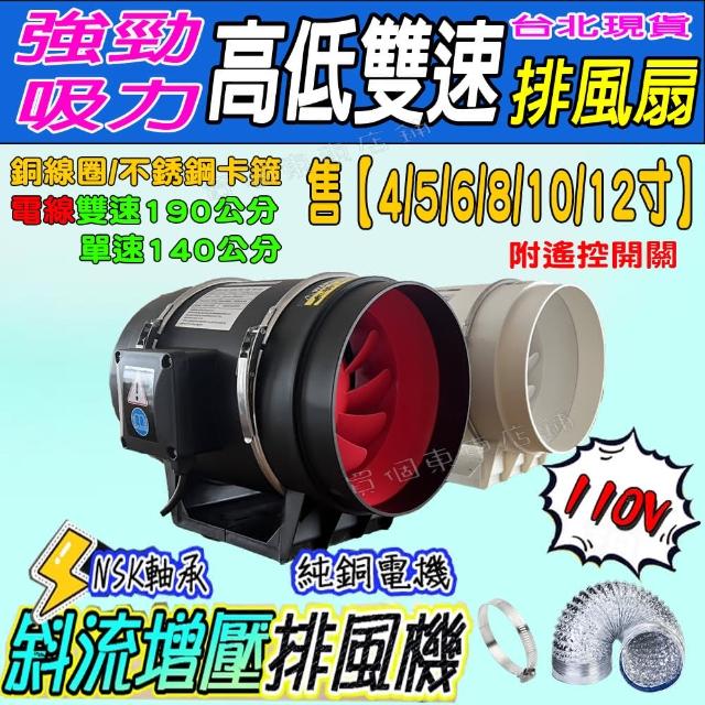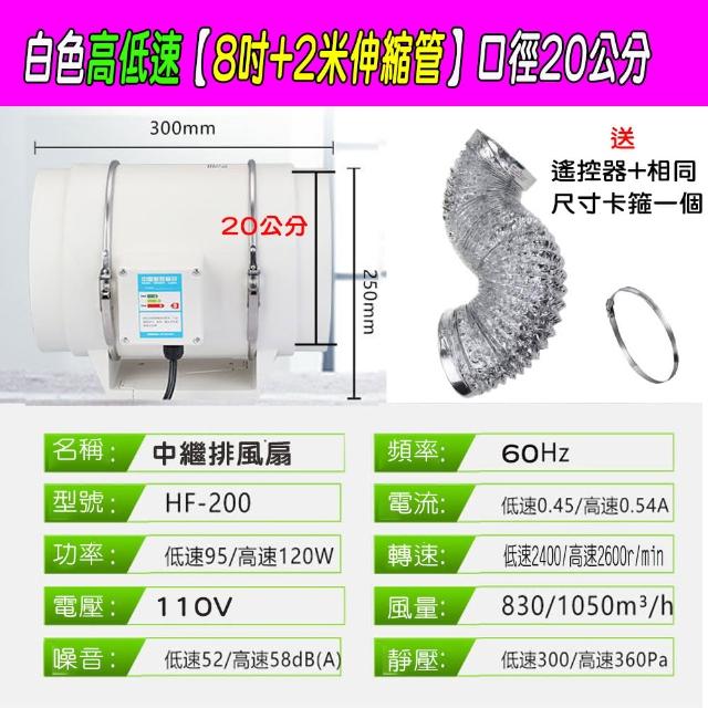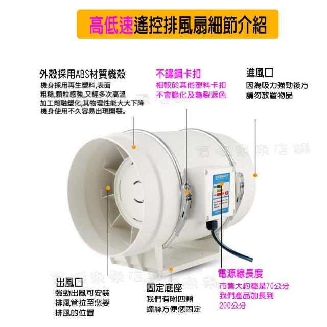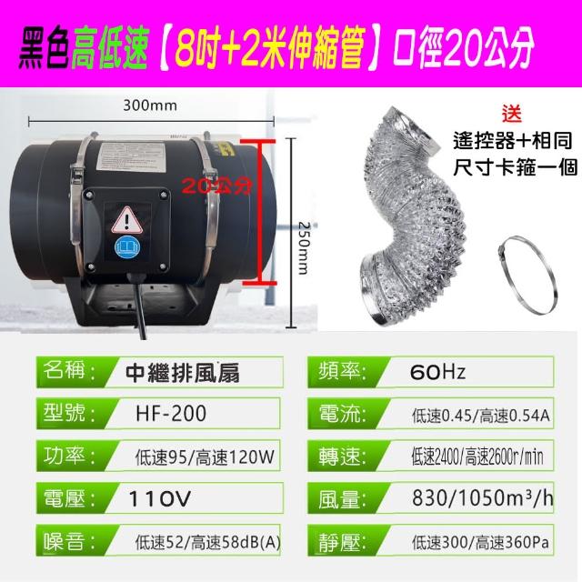 全記得大賣場 高低速 8寸主機+2米排風管 送一卡箍 110V附遙控 排風扇 排風機 換氣扇 抽風機 風扇 中繼風扇 排煙扇