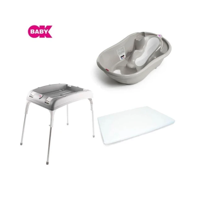 OKBABY義大利 頭等艙嬰兒浴盆(F1027)+澡盆專用折疊架(F026)+攜帶式尿布墊(F040)