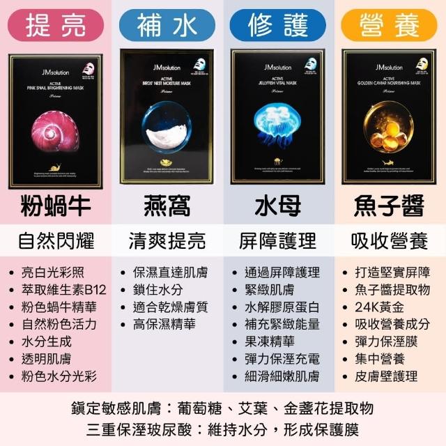 JMsolution經典保濕穩定面膜 一盒10片(珍珠 補水 保濕 營養 面膜 水母 葡萄 面膜 蜂蜜 紅蝸牛 燕窩)