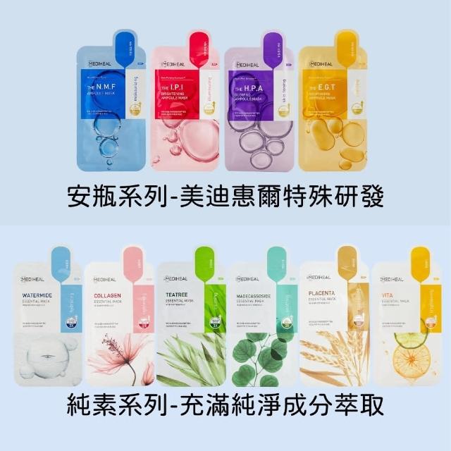MEDIHEAL 美迪惠爾美迪惠爾 精華系列面膜 多款任選 一盒15片面膜 積雪草 保濕 膠原蛋白 茶樹