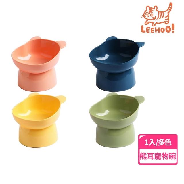 LEEHOO北歐風傾斜高腳熊臉碗寵物碗 狗碗 貓碗 寵物餐具