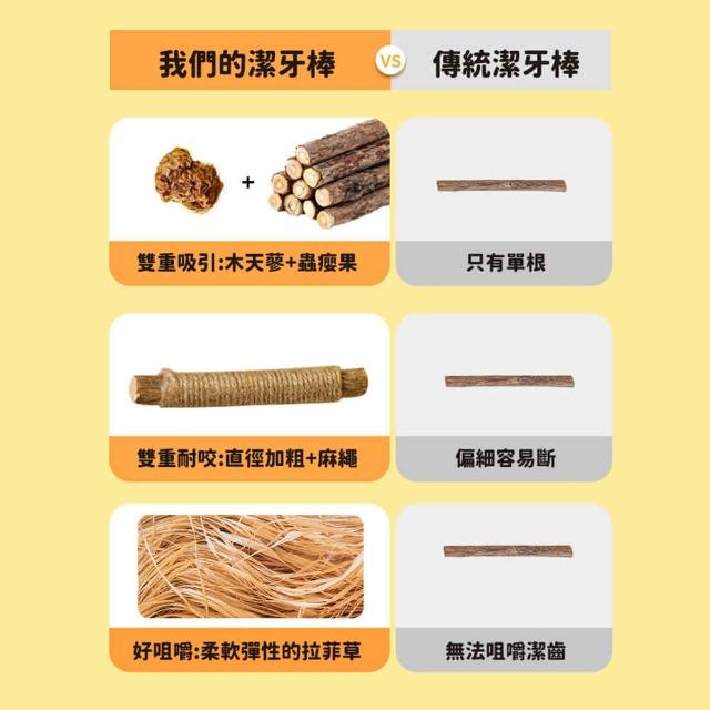 - 木天蓼外包裹麻繩,增加潔牙效果