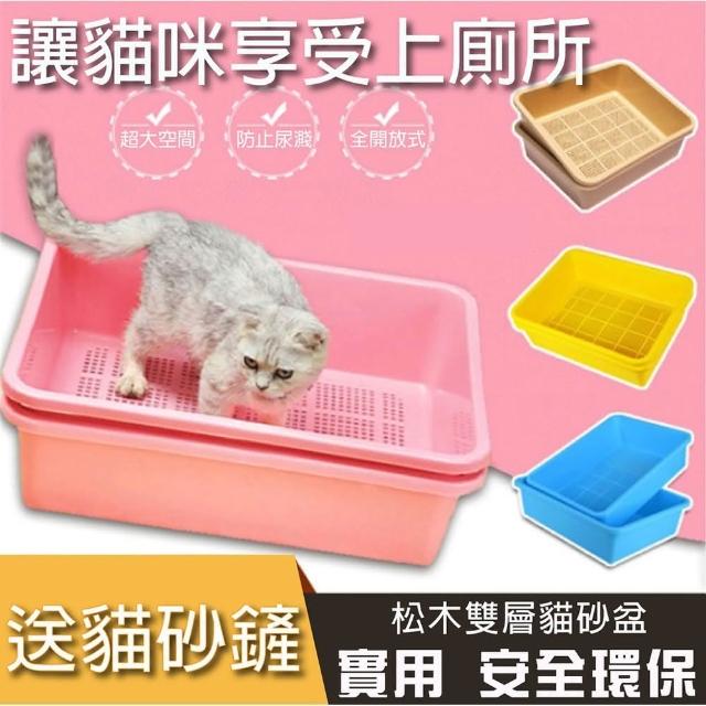 LEEHOO卡路 CANRU 松木砂用 貓砂盆雙層貓廁所 崩解式 大型便盆 過篩網 雙層