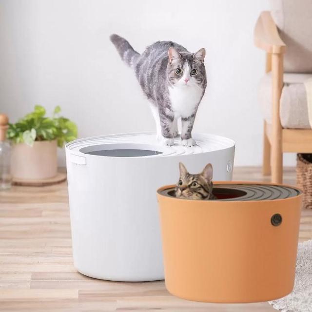 IRIS 艾莉詩桶型便盆PUNT-530 附貓砂鏟 簡約無印風 上蓋可拆大貓便盆 防潑砂設計 桶式貓便箱 PUNT-530 貓砂盆