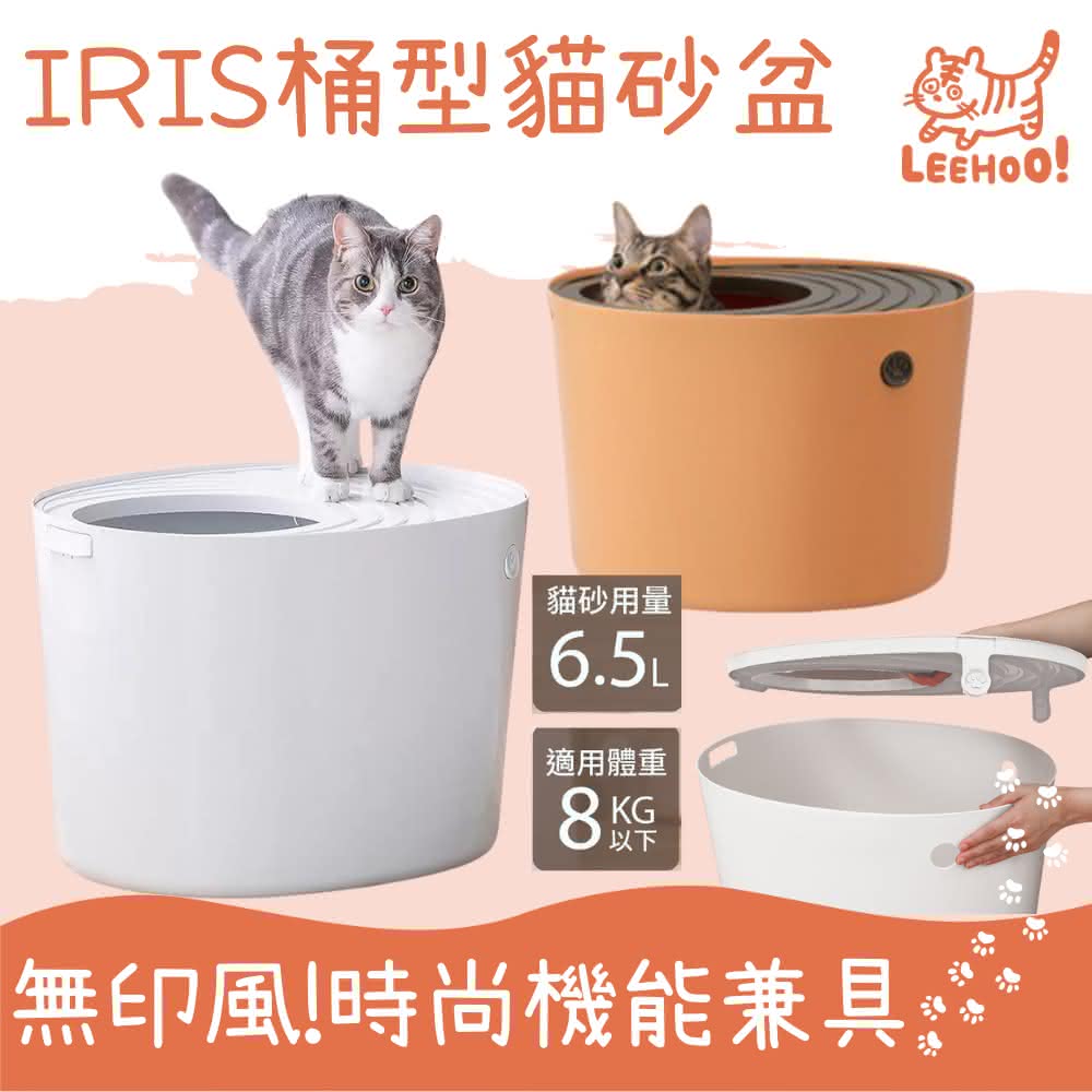 IRIS 艾莉詩桶型便盆PUNT-530 附貓砂鏟 簡約無印風 上蓋可拆大貓便盆 防潑砂設計 桶式貓便箱 PUNT-530 貓砂盆