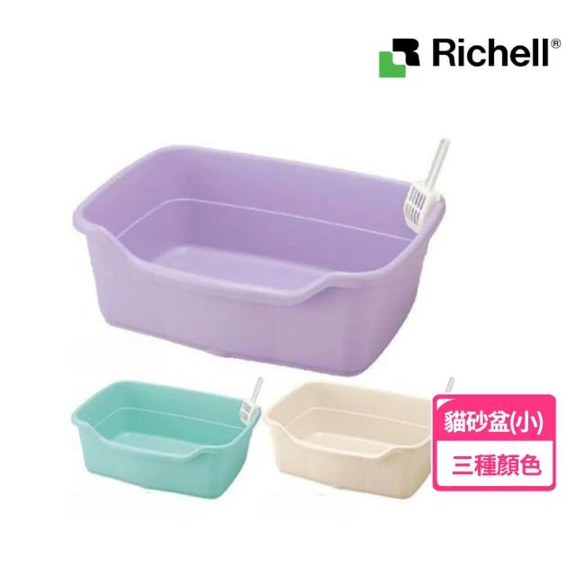 Richell 利其爾卡羅方型貓便盆 小 40x29x16貓砂盆 貓便盆 貓咪廁所 開放式 紫色 淡藍 米色