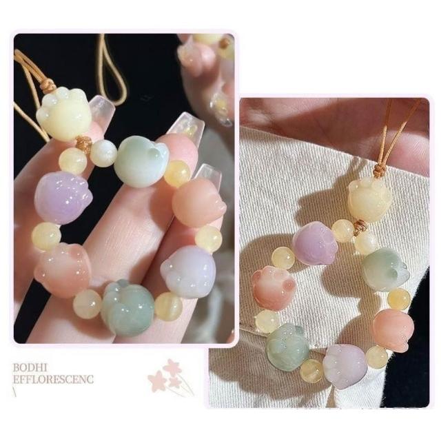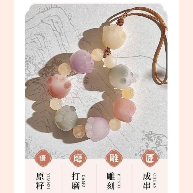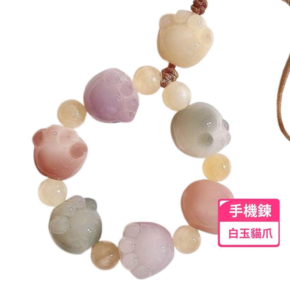 LEEHOO雕刻白玉貓爪繁川手機鍊 吊飾 手機吊飾 貓掌吊飾 貓掌手機鍊 貓爪 貓掌 隨機不挑色