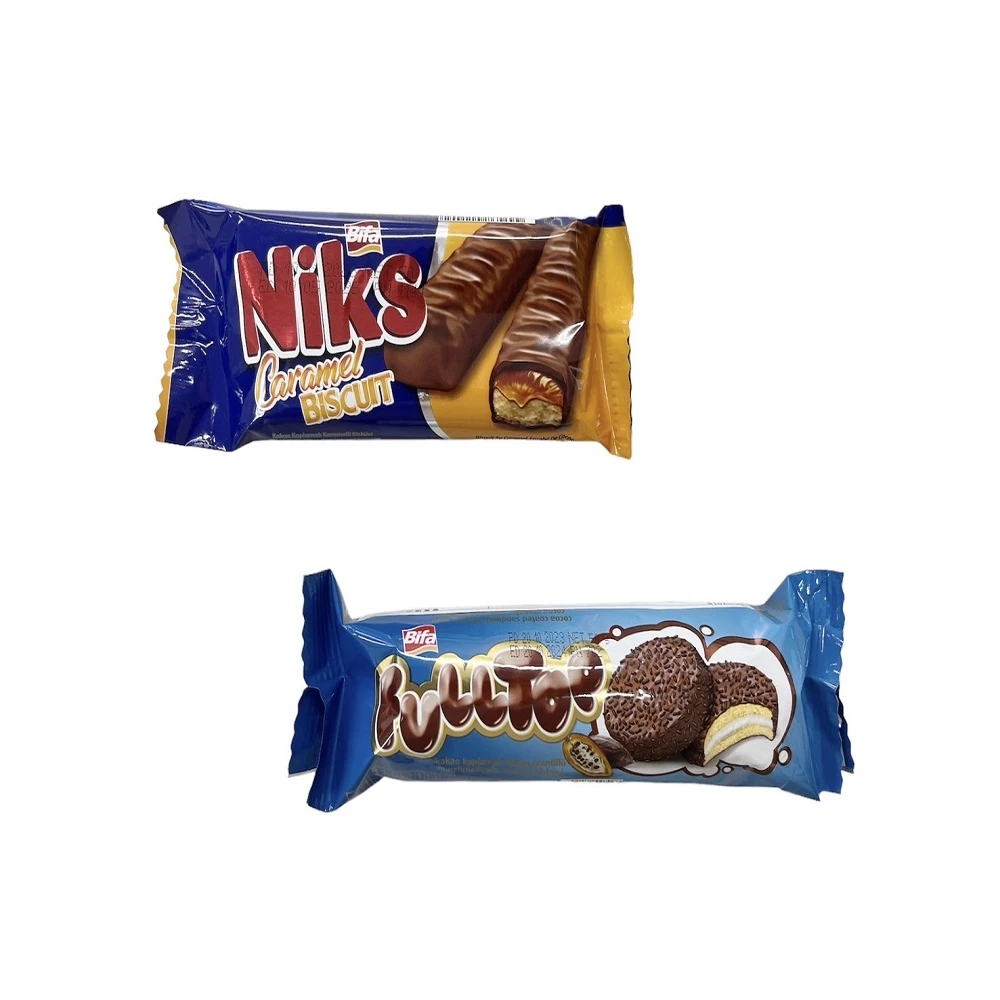 BIFA牛奶巧克力焦糖餅乾.可可粒塗層棉花糖夾心餅